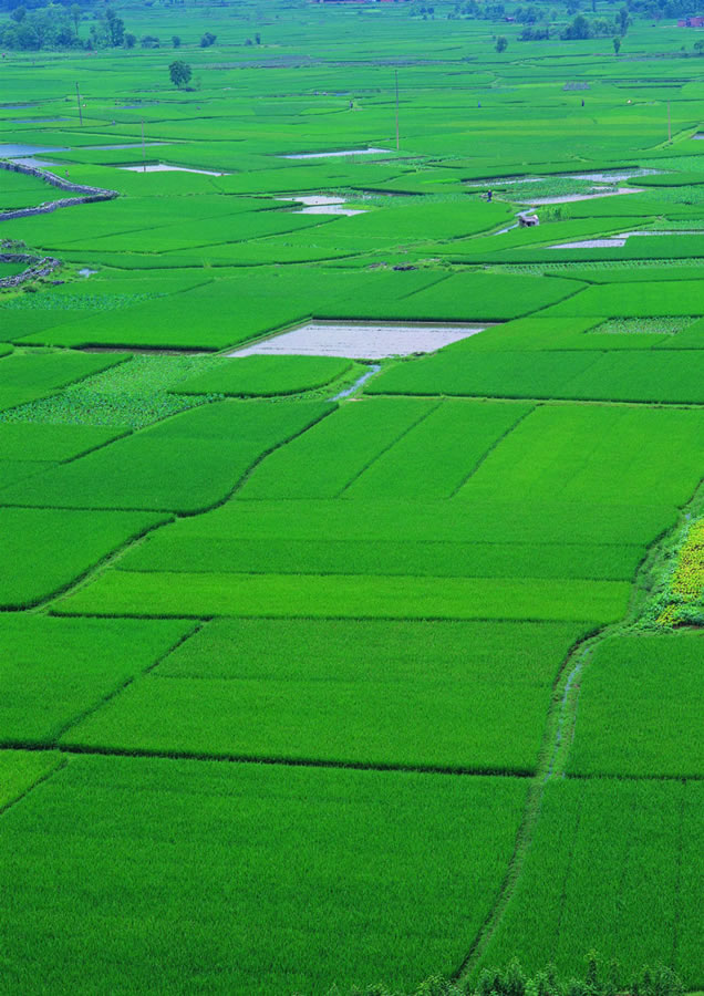 位于長(zhǎng)江流域中部,雖屬江漢平原,卻位于山腳之下,不是高高的山,只是淺淺的丘陵,于是便有了那攝影作品總總出現(xiàn)的秋天起伏的金黃稻浪、春天綠一塊黃一塊似錦緞的畫(huà)卷,那是滿眼的油菜花和中間穿插的幾塊綠色麥田,不是典型的梯田卻也層層疊疊。