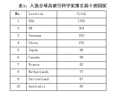 “高被引科學(xué)家”全球排行