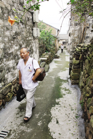 平陽村目前共有281個慢性病患者,陶才法在給病人診療的同時,還負(fù)責(zé)隨訪、記錄這些慢性病病人的情況。82歲的馬岳富因高血壓引發(fā)中風(fēng),曾接受住院治療。經(jīng)過長時間的康復(fù)治療,馬大爺?shù)男袆幽芰是不好。8月29日中午,趁著病人較少,陶才法步行10多分鐘到了馬大爺?shù)募依。他不但為大爺測了血壓,還仔細(xì)詢問了是否按時服藥,家里藥品的剩余量等情況。臨走時,陶才法又仔細(xì)囑咐老人,“吃清淡點(diǎn),藥一定得按時吃。”像這樣有特殊情況的隨訪病人有40個,陶才法都上門服務(wù)。