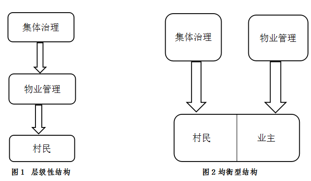 如圖2所示,分置模式形成了均衡性結(jié)構(gòu)。物業(yè)管理為集體治理形成了一個(gè)“沖突隔離域”,并且維持了社區(qū)內(nèi)部村民與業(yè)主的利益平衡。在這個(gè)意義上,它構(gòu)造了一種有效的分類治理結(jié)構(gòu),適應(yīng)了轉(zhuǎn)型社區(qū)的異質(zhì)性。