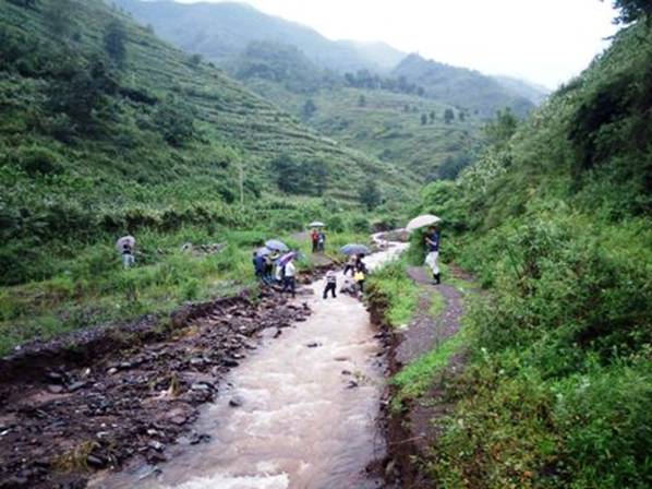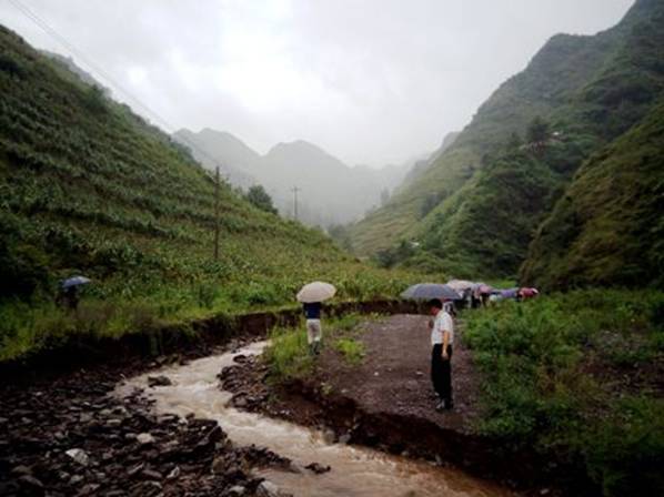 要經(jīng)濟(jì)發(fā)展就要占據(jù)更多的自然空間,本來(lái)就狹窄的山區(qū)容納了大多的房屋、廠房和道路。結(jié)果一下雨就洪澇災(zāi)害。這次我們考察途經(jīng)的兩個(gè)地方都遭到了洪水圍困和浸泡,云南境內(nèi)的威信縣周邊的道路全被沖毀,與外界隔絕,成為孤島。貴州境內(nèi)沿河而居的赫章縣也因河水暴漲而被淹沒(méi)。
