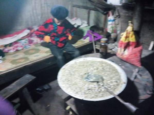 照片21,這就是當(dāng)?shù)厝顺缘娘!沒(méi)有炒菜,沒(méi)有饅頭、米飯,只有一盆粥糊。