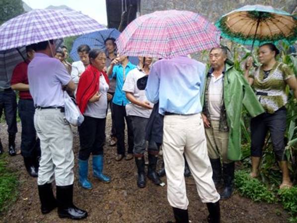 照片25,下山的路上胡星斗教授等被村民圍住,民情洶洶,聽(tīng)其訴說(shuō)山區(qū)問(wèn)題,這么狹小的山谷居住了一百多戶村民,幾百口人在這兒怎么生存?