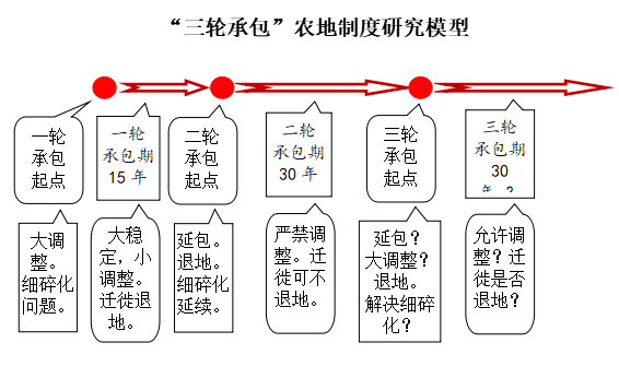 按照上述總體分析,有必要建立一個(gè)“三輪承包”農(nóng)地制度研究模型(見(jiàn)下圖),以做到一覽無(wú)余、總體把握,系統(tǒng)設(shè) 計(jì)、科學(xué)合理。